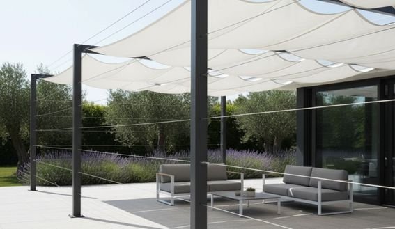 Estructuras tensoestáticas a medida para cubrir terrazas grandes, accesos, jardines o zonas de evento.